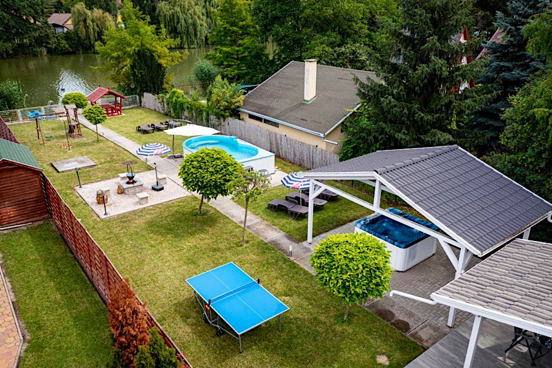 Vendégeink kényelméhez és kikapcsolódásához az alábbi eszközöket biztosítjuk: Napozóágy, pingpongasztal, tollas, lengőteke, Wifi, fa játszótér 5éves korig, 5 személyes jakuzzi, föld feletti medence, bográcsozó. A vízparton vizibicikli, horgászcsónak, part világítás, kerti kiülő. A vendégház fúrt kúttal rendelkezik, zuhanyzásra, fürdésre alkalmas, nem ivóvíz minősítésű. Kérjük vendégeinket az ivóvízről maguk gondoskodjanak. Vendégházunk önellátó.