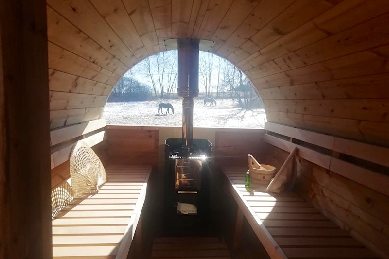 Panoráma ablakos, fatüzelésű finn hordószaunánk páratlan élményt nyújt az ellazulni vágyóknak a csillagos ég alatt.