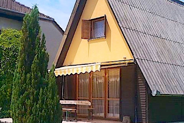 Kiadó 4 személyes faházunk Balatonmáriafürdőn, a szabad strandtól pár méterre.