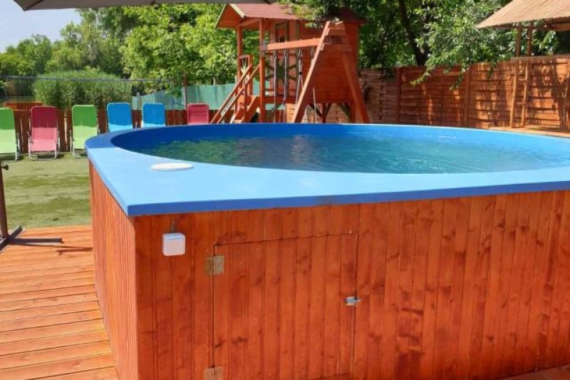 Gyerekeknek kis játszótér, 3, 6 méteres kör alakú medence, napozó ágyak, hintaágy, ping- pong asztal áll rendelkezésre. A parti rész kerítéssel elkerített a gyerekek védelme érdekében, itt található egy bográcsozó, melyhez tűzifát biztosítunk A nyaraló lassan járható földúton közelíthető meg földút: 1, 2 km Egyedi árakért keressen bizalommal.