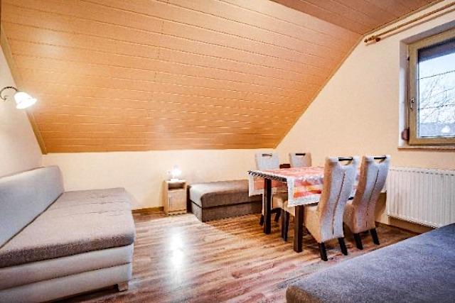 A szobák 3-4 ágyasak. A vendégház két szintből áll. Az emelet nem a földszintről, hanem külső lépcsővel közelíthető meg. A tetőtérben három szoba található: két 3 ágyas és egy 4 ágyas, ezekbe be van építve a WC-és, zuhanyzós fürdőszoba. Szerényebb konyha használat itt is biztosított. Az alsó szinten két szoba van, egy 2-3 ágyas és egy 4-5 ágyas. A fürdőszobák a folyosóról nyílnak. Ezen a szinten található a konyha nappalival egybeépítve. Itt lehet főzni és étkezni is. Étkezés önellátással. Bográcsozni és grillezni is lehet. A szintek, szobák külöl-külön és egyben is bérelhetők.