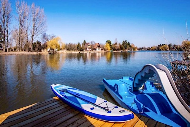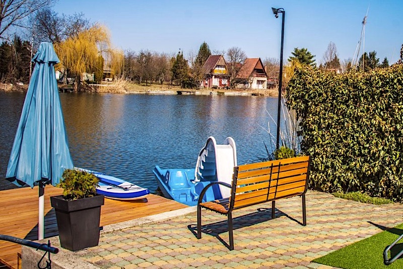 Körösparti igényes 6 fős nyaraló, nagy stég, vízibicikli, SUP deszka