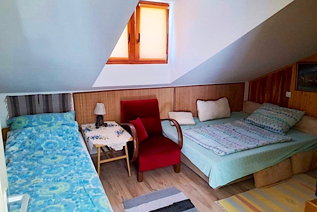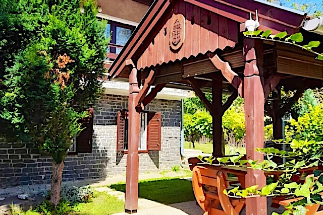 Két szoba szobánként 1 franciaágy + 1 heverő, előszoba, fürdőszoba, konyha, barátságos borozórésszel, eredeti 19. századi bútorokkal. A ház mellett egy hangulatos fedett fa kiülő áll rendelkezésre, 8-10 személy részére. A házban tévé is van.