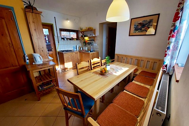 A ház újonnan épült 2010-ben a régi helyén és mintájára. Önállóan kiadó akár egy személy akár nagyobb társaság igényli. Földszintjén a nagyobb szobában egy kétszemélyes fekhely, a kisebben kettő egyszemélyes fekhely van. A tetőtérben kis nappali, kettő hálószoba van. Itt szobánként 4-5 vendég tud megszállni. Mindkét szinten van egy fürdőszoba. A házban a konyha teljesen felszerelt, hűtő, mikró, kávéfőző, vízforraló, kenyér pirító, gáz főzőlap, mosógép. Árnyas kert, grillezési és bográcsozási lehetőséggel, teszi otthonossá a gádoros házat.