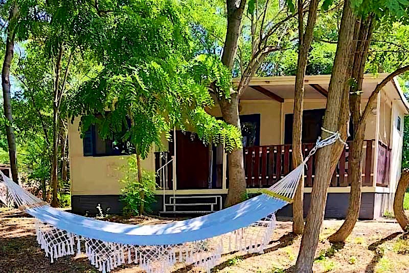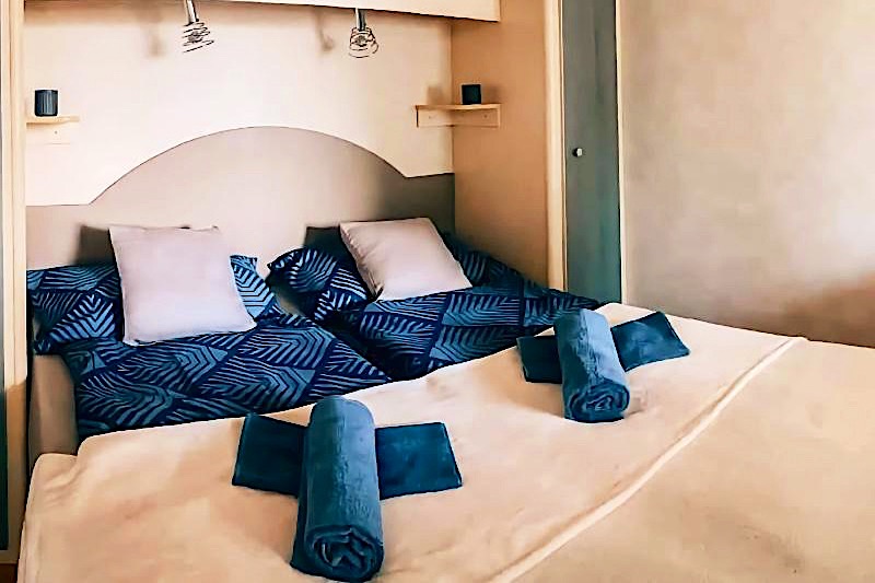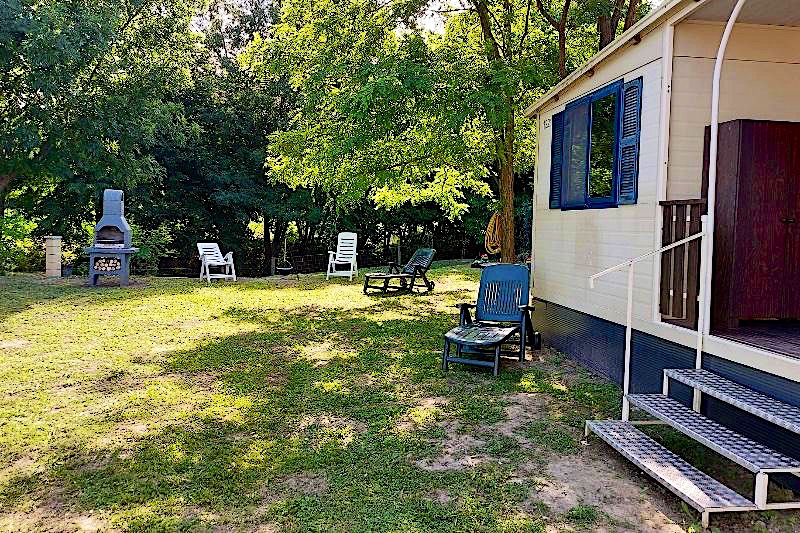 Két mobilházzal rendelkező szállásunk kiadó, melyet a Bakonyér félig ölel körül.