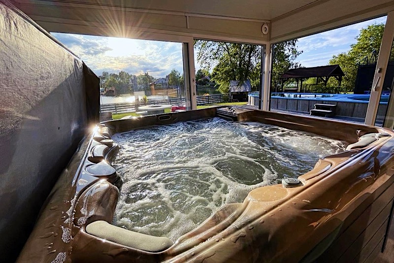 10 férőhelyes nyaraló, ahol minden adott a tökéletes kikapcsolódáshoz: Jacuzzi, szauna, medence, SUP, csónak, vízibicikli, felfedezés a vízen, 4 hálószoba, 2 fürdő, 3 WC – kényelem az egész családnak, WIFI,