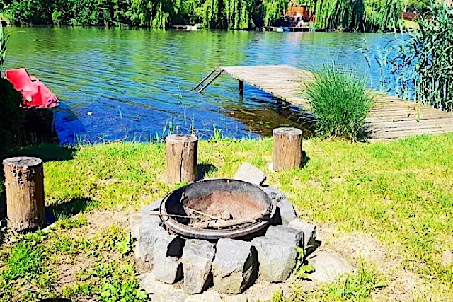 A vízpart, kerítéssel lezárható. A parton szalonnasütő kövekből kirakva. Kérhető grillsütő, bográcsozásra, szalonnasütésre felszerelés adott. Napozóágy kérhető. Kerti hinta van. Szép kártyát elfogadunk. A szomszéd házzal közös udvarban rönkfa-játszótér található homokozóval. Emellett nyírott füves parkja sétálásra kiváló. Gyönyörű parkos fás környezete csendes, messze a közúttól.